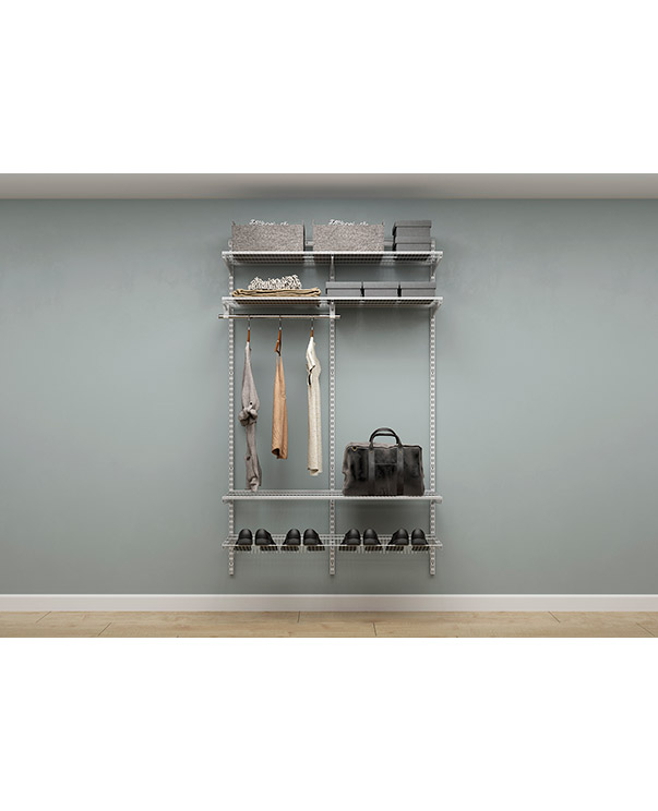 В комплект входят несущие рельсы и навесные направляющие, полки, штанги, аксессуары, крепежные элементы. Можно докупить множество дополнительных компонентов для гардеробной системы.