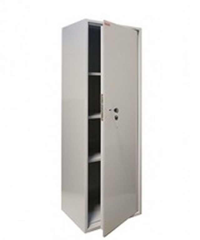 Шкаф представляет собой сварную металлическую конструкцию прямоугольной формы. Корпус и дверь шкафа изготовлены из стального листа толщиной 1,2 мм. Дверь изнутри усилена панелью коробчатого сечения из стального листа толщиной 0,8 мм. Шкаф комплектуется 3-мя съемными регулируемыми по высоте полками. Петли шкафа – внутренние. Окраска - полимерное порошковое покрытие, цвет серый.