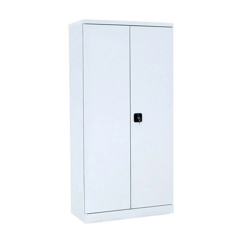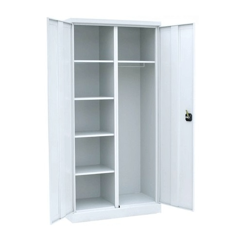 Шкаф офисный вещевой для документов и одежды, состоящий из двух секций, запираемых на ключевой замок.