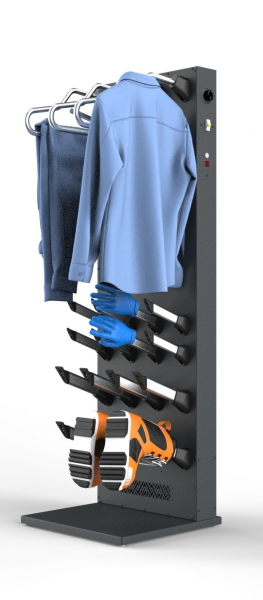 Сушилка предназначена для эффективного и быстрого просушивания 4 комплектов одежды ( куртки и брюки) , 4 пар обуви , 4 пар перчаток.