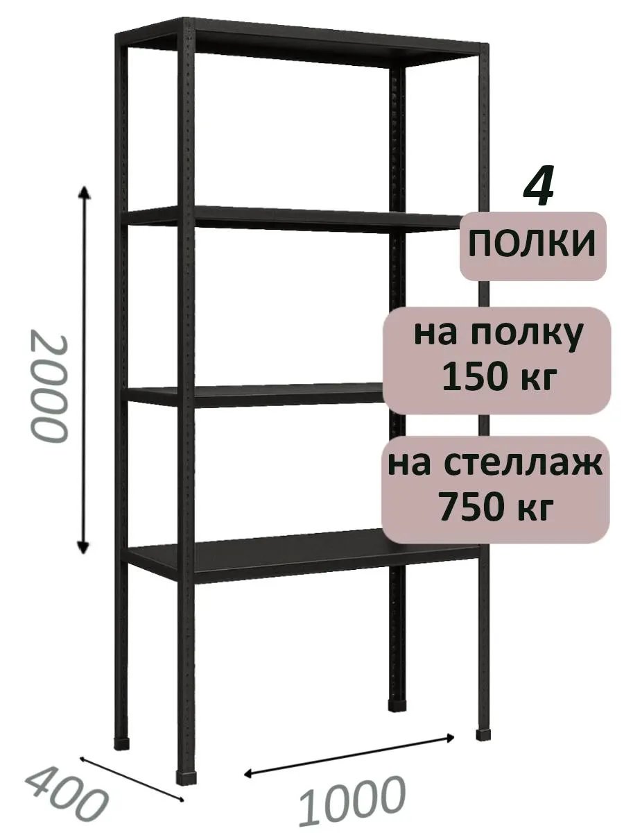 Стеллаж МС 2000х1000х400, 4 полки, чёрный