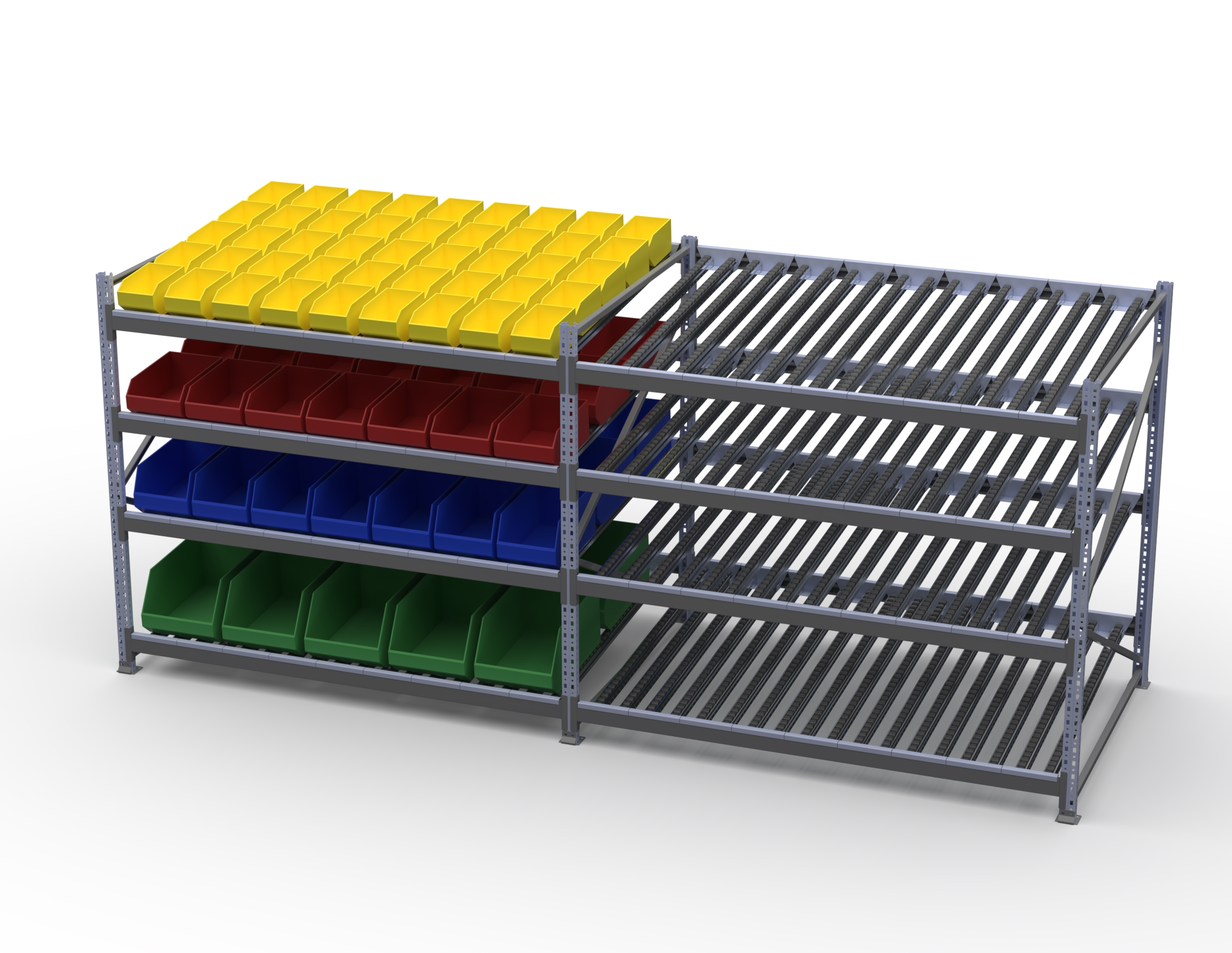 Модель подходит для размещения пластиковых ящиков, коробок и лотков, а роликовые полки обеспечивают их плавное перемещение к зоне доступа под действием собственного веса. Такой принцип работы позволяет организовать FIFO-хранение, повысить скорость комплектации и сделать складские операции более удобными и предсказуемыми.