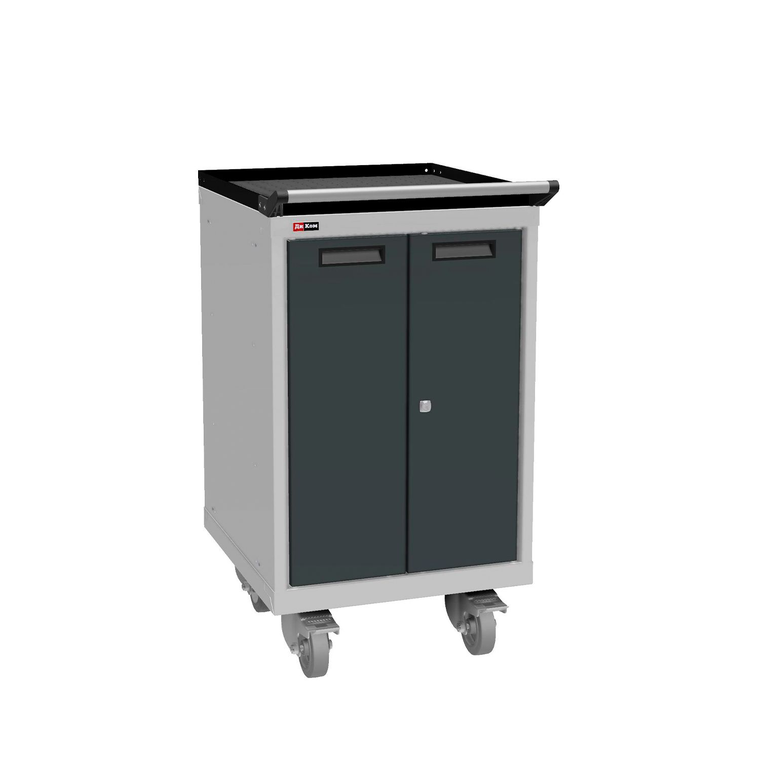 Тумбы окрашены эпоксидной порошковой краской, устойчивой к механическим воздействиям и агрессивным жидкостям: корпус и экран – серые RAL 7038; ящики и двери – антрацитовый серый RAL 7016.