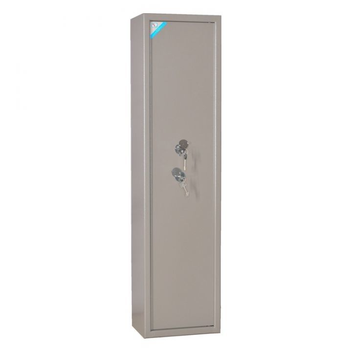 Сейф оснащен тремя съемными полками и отделением под патроны. Комплектуются роликовыми ложементами. Максимальная высота устанавливаемого оружия — 1380 мм. В двери установлены 2 ключевых 8-ми сувальдных замка с ригельной системой запирания в 3 стороны. Диаметр ригеля 20 мм. Второй замок ЗАО «Про-Сам» г. Рязань или аналогичный замок другого производителя.