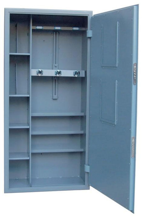 Сейф односекционный, на 3 ствола, оснащен универсальной перемещаемой по высоте полкой с опорой ложементов.