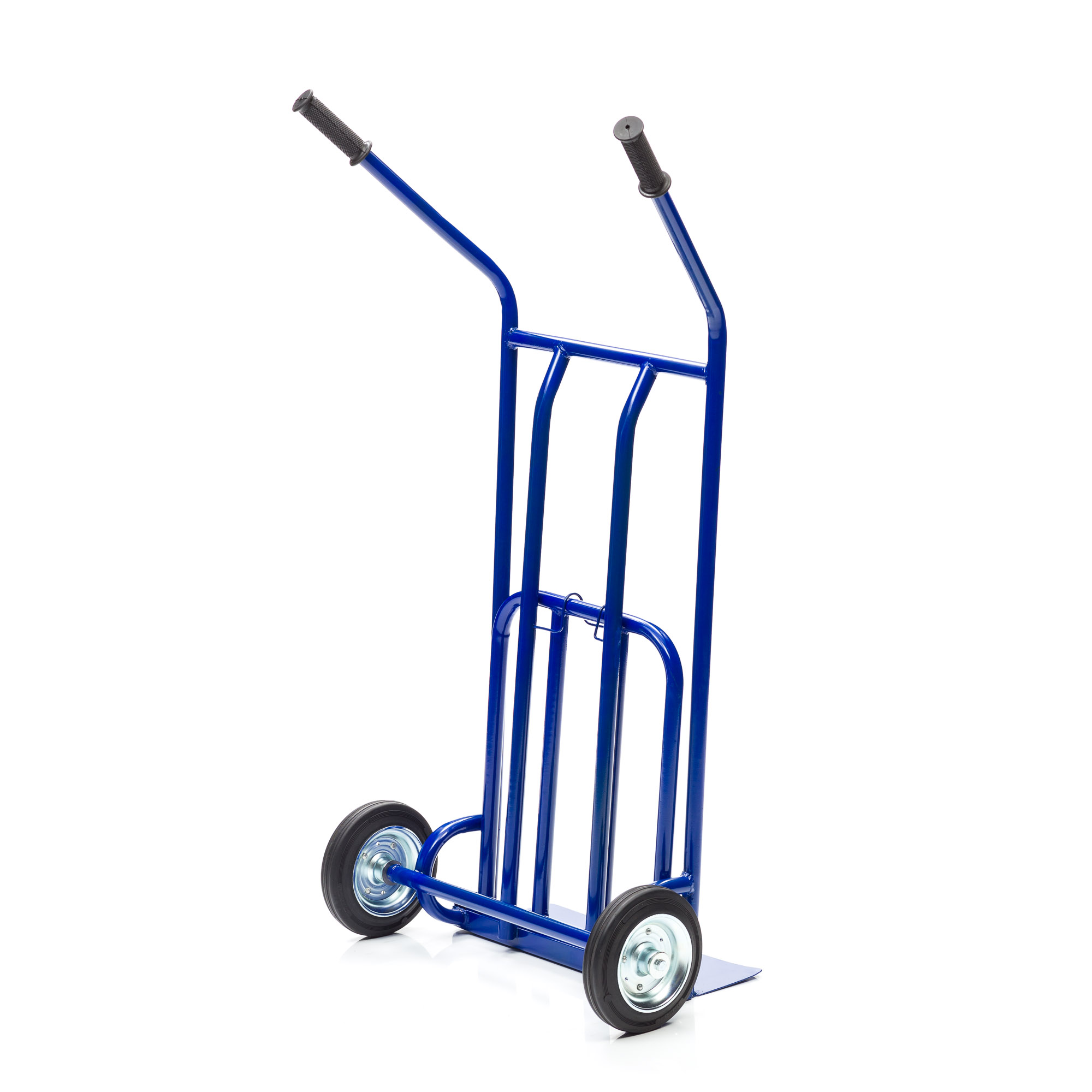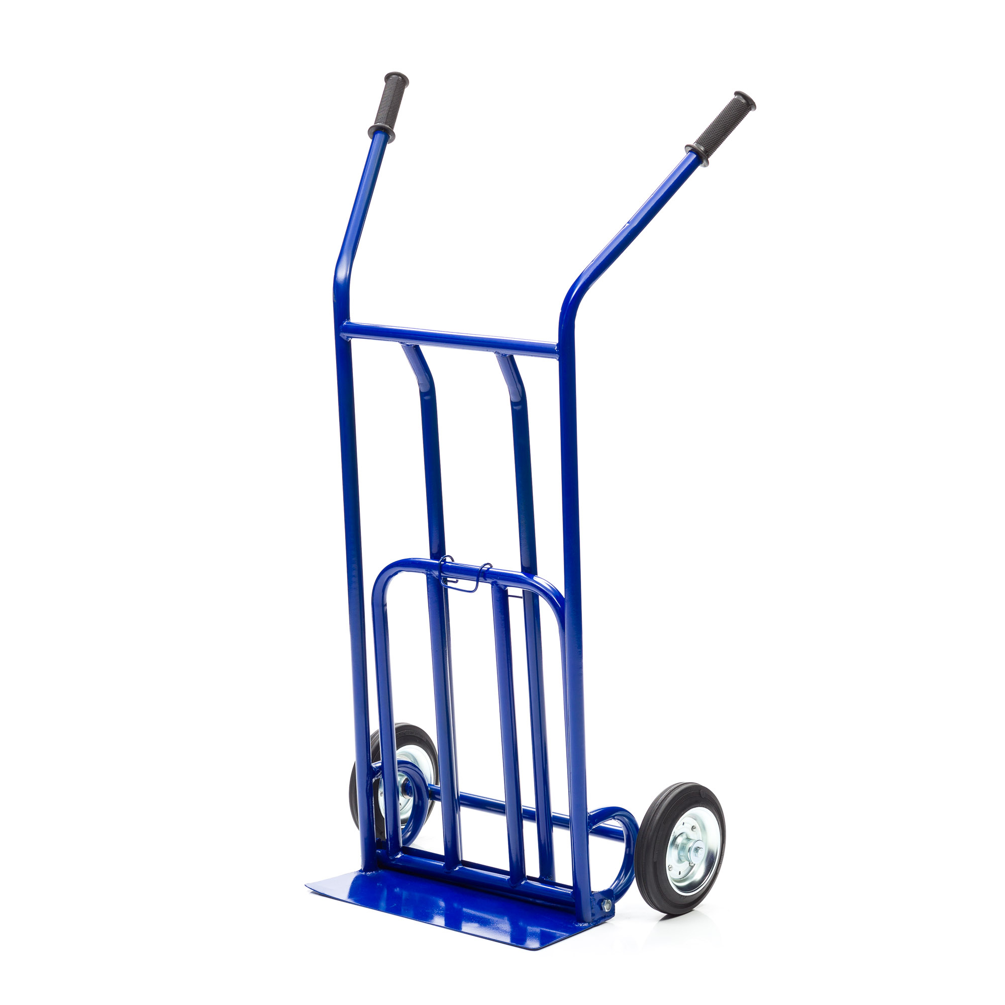 Грузовая 2-х колесная тележка с откидной полкой КГ-200 предназначена для транспортировки груза весом до 200кг. Надежная металлическая конструкция оснащена двумя колесами диаметром 200мм. и удобными ручками, что значительно облегчает перемещение телеги. Благодаря небольшому весу и хорошей грузоподъемности, тележка используется в складских помещениях, при работах на производстве и в бытовых целях. Комплектуется колесами из высококачественной литой резины. Покрытие полимерное. Цвет синий.