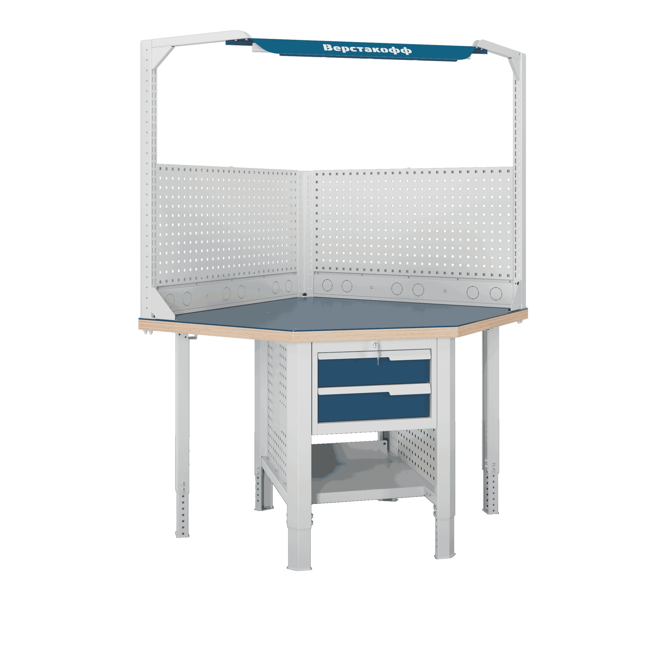 Блок стыковки углового верстака серии Constructor U5 разработан для обеспечения максимальной гибкости и надежности, учитывая конструктивные характеристики рабочего помещения.