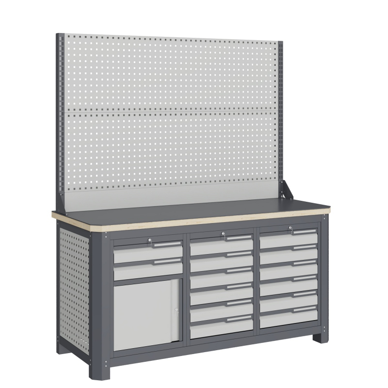 Верстак серии MECHANIC: MCN 1552.S669, перемычек, боковых перфопанелей, малых модулей S6 и S9, двойного экрана с кронштейнами и комплектом освещения.