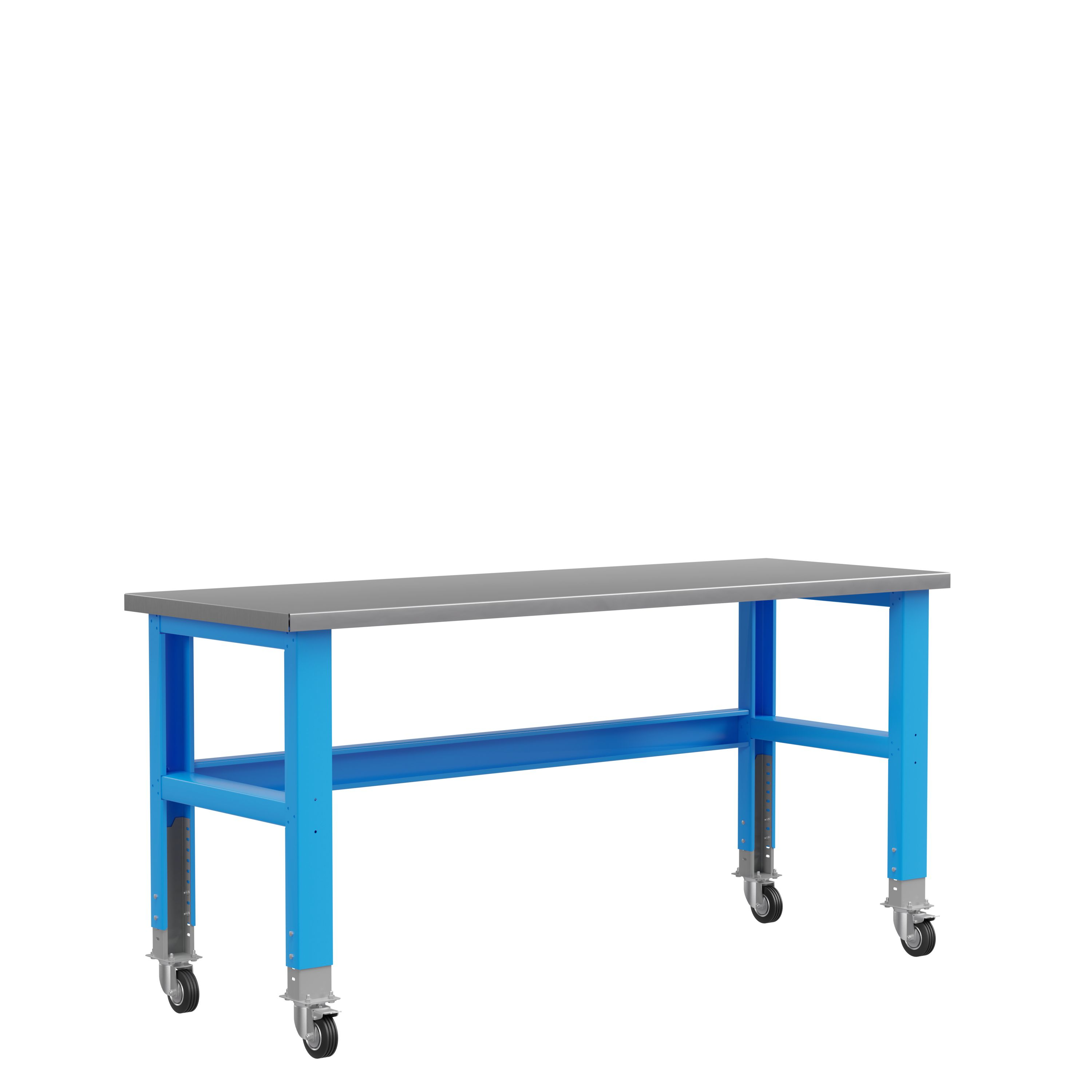 Дополнительно, изделия могут комплектоваться колесными опорами, перфорированными панелями, полками и держателями для инструментов.Конструкция опор позволяет производить регулировку по высоте от 800 до 1000 мм, что позволяет использовать подкатные инструментальные тележки «Верстакофф ®» серии 795. Сборный, усиленный каркас из профилированной листовой стали толщиной 1 мм, и столешница из листовой стали толщиной 2 мм, несут максимальную нагрузочную способность до 700 кг. Столы промышленные металлические окрашены порошковой краской.