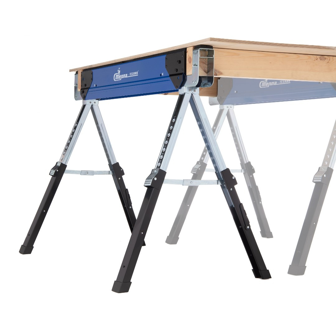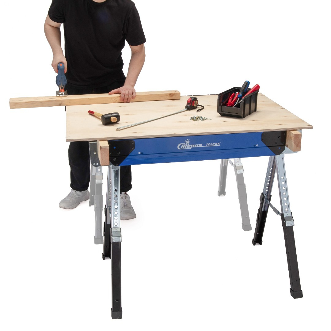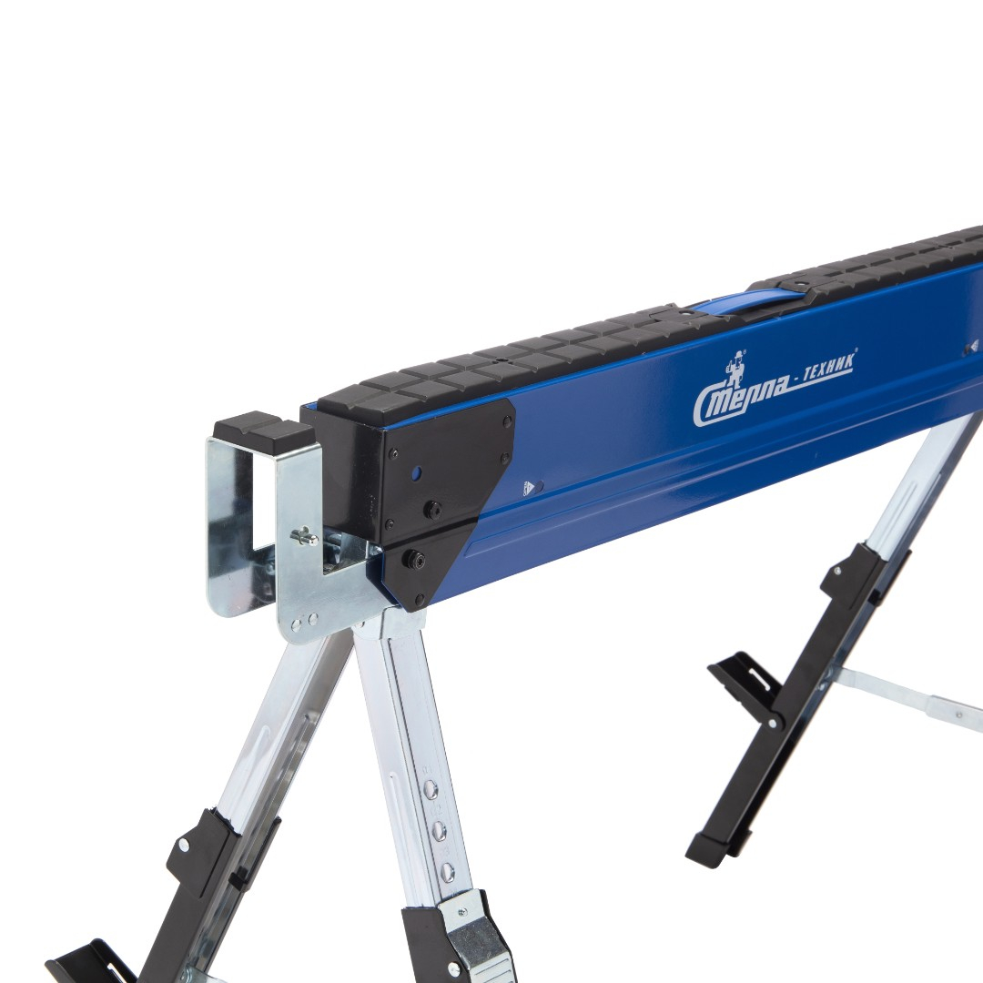 Козлы оборудованы складными, телескопическими ножками. Регулируются по высоте в 8-ми положениях: от 640 до 820 мм.